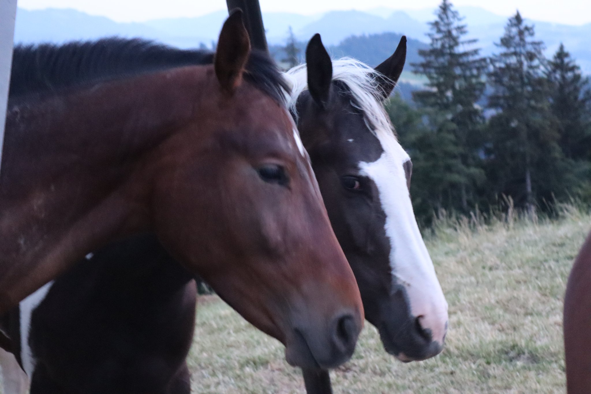 Nils, unser Wallach, gehört auch noch zu dieser Truppe. Er ist 2016 geboren und bringt viel Ruhe und Gelassenheit in unsere Herde. "Eifach ä cooli Socke" meint unser Schmied, Beat Marti, Niedermuhlern.